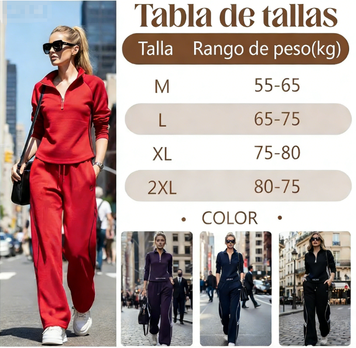 ESTILO ATHLEISURE SIN ESFUERZO - Combinando comodidad con moda contemporánea, este traje presenta líneas limpias y detalles sutiles. Transita sin problemas de una sesión de entrenamiento a una salida informal a tomar un café sin renunciar al estilo.
