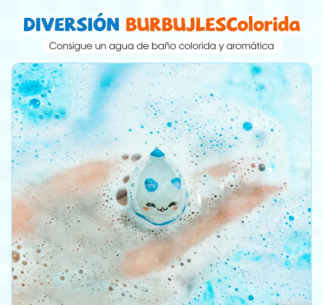 AGRADABLE SORPRESA EN EL INTERIOR: cada bomba de baño contiene una adorable figurita de un animal marino, lo que convierte la hora del baño en una emocionante búsqueda del tesoro para los niños y les anima de forma lúdica a adquirir buenos hábitos de higiene.