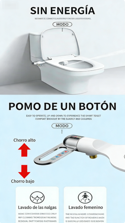 Este accesorio de bidét solo necesita un flujo cómodo de agua para una limpieza profunda, reduciendo la dependencia del papel higiénico y las toallitas húmedas.