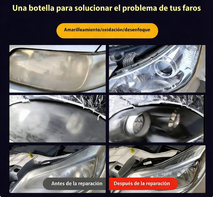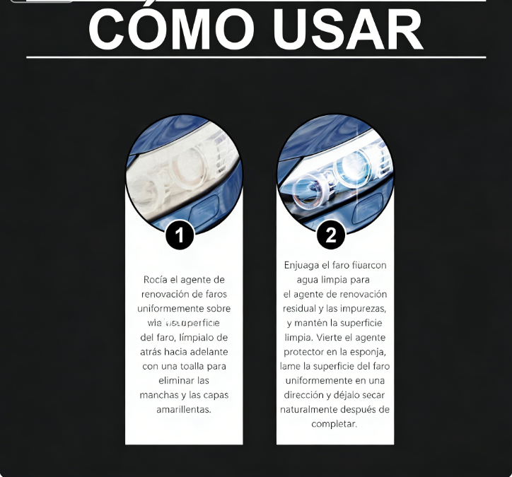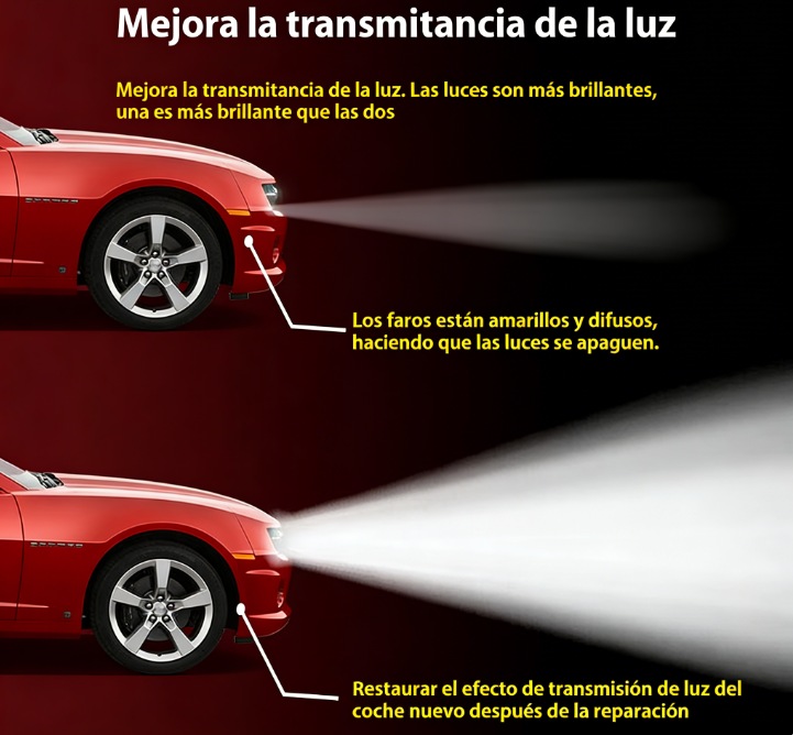 Funciona en Todo Tipo de Faros: Efectivo tanto en lentes de plástico como de vidrio en varios modelos de automóviles. Seguro para usar en lentes de plástico, policarbonato y acrílico; compatible con la mayoría de marcas y modelos de vehículos.