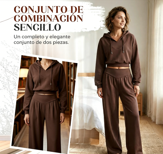 👚 Conjunto de Sudadera con Capucha V y Pantalones para Mujer – Comodidad y Estilo Casual para Todos los Días ✨💖