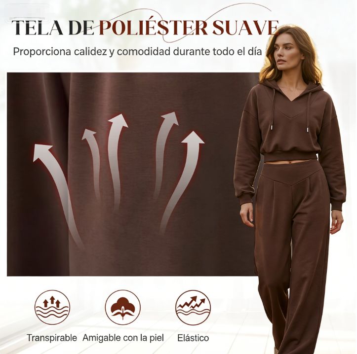 TELA SUAVE Y ACOSEGADORA - Confeccionado en poliéster de primera calidad, este conjunto se siente increíblemente suave y cómodo sobre la piel. Proporciona calor y confort, convirtiéndose en tu elección perfecta para los días frescos y las noches relajadas.