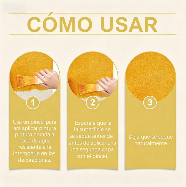 Utilice un pincel para aplicar pintura dorada a base de agua y resistente a la intemperie.