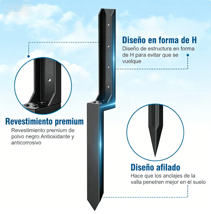 DISEÑO INNOVADOR EN FORMA DE H - La exclusiva estructura en forma de H ofrece una estabilidad superior a la de las estacas estándar al distribuir la fuerza uniformemente, evitando que se inclinen en el futuro y reforzando la base del poste para una reparación fiable y duradera.