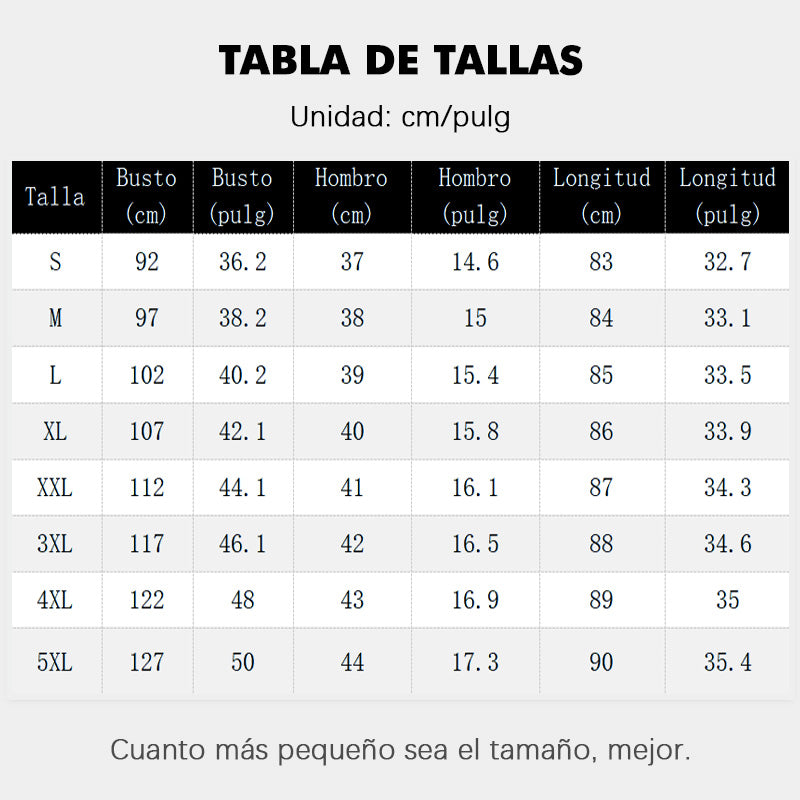 Tamaños Disponibles: S, M, L, XL, XXL, 3XL, 4XL y 5XL