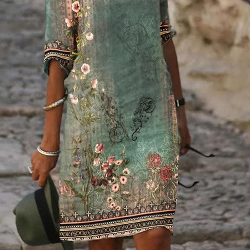 🌸Vestido Casual de Manga Corta con Cuello en V Estampado🌸