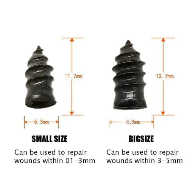 El diámetro interior es inferior a 5 mm, sin daños en los neumáticos ni fugas de aire. Simplemente inserte el clavo en la herida del neumático para realizar un trabajo de reparación de neumáticos fácil y eficiente.