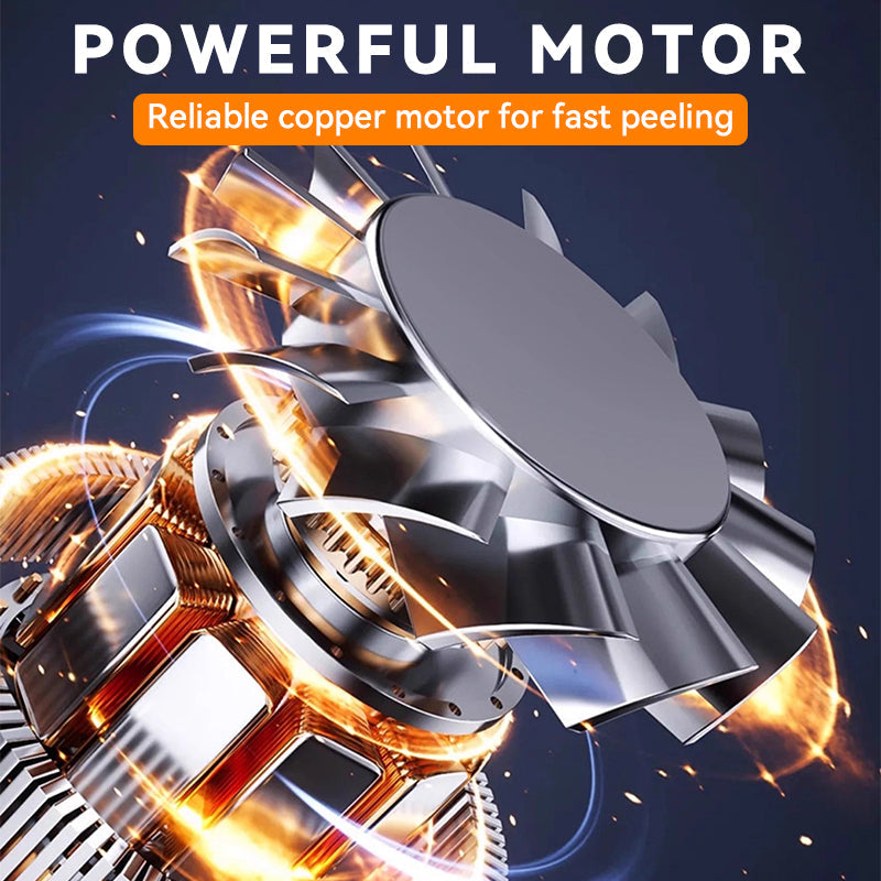 POTENTE MOTOR DE ALAMBRE DE COBRE – Equipada con un motor de alambre de cobre de alto rendimiento, esta peladora eléctrica garantiza un pelado rápido y eficiente de diversas frutas y verduras. El motor proporciona una potencia constante, lo que permite pelar incluso las frutas más pequeñas sin esfuerzo, sin atascos ni pérdida de rendimiento. Su durabilidad y fiabilidad la convierten en una herramienta que ahorra tiempo en cualquier cocina.