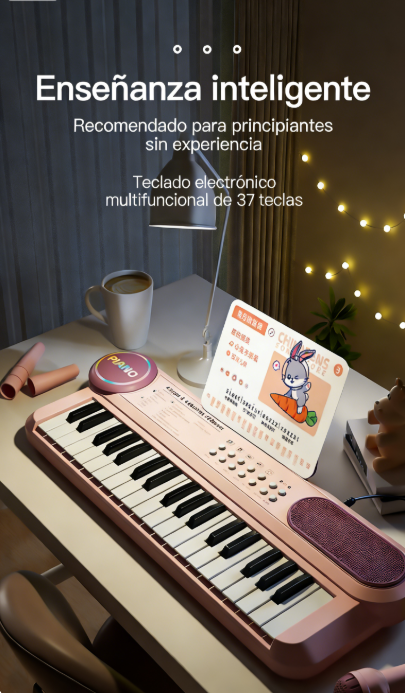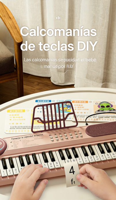 Tocar el teclado ayuda a mejorar la concentración, coordinación mano-ojo y memoria, mientras los niños juegan y se divierten. ¡Aprender nunca fue tan entretenido! 🌈✨