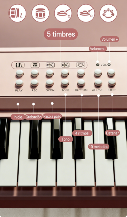 Diseñado especialmente para niños, este teclado permite que aprendan música desde cero, sin presión y de forma divertida. Perfecto para despertar el amor por la música desde temprana edad 👧🎶