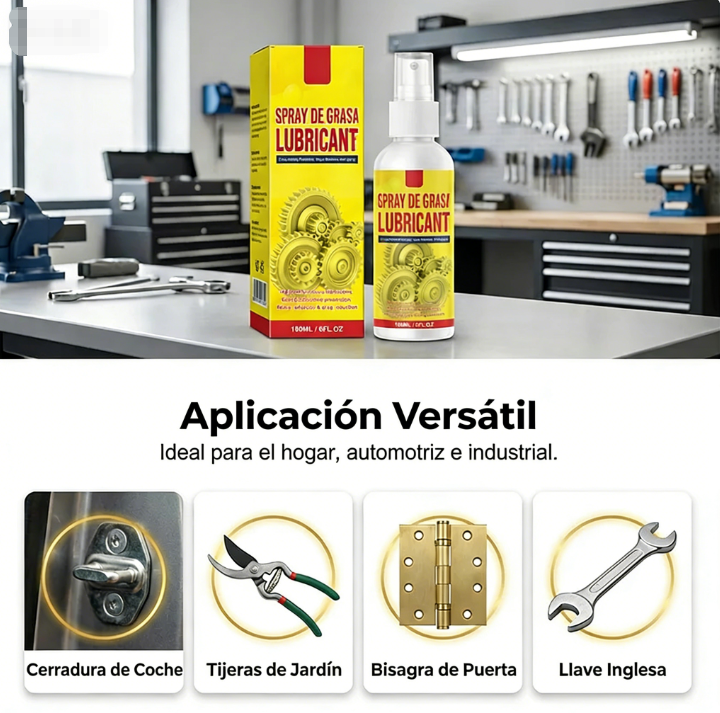 ELIMINA LOS CHIRRIDOS AL INSTANTE - Diga adiós a los molestos chirridos y crujidos. Aplique el spray en bisagras de puertas, rieles de garaje y piezas móviles para disfrutar de un funcionamiento mecánico silencioso y suave.