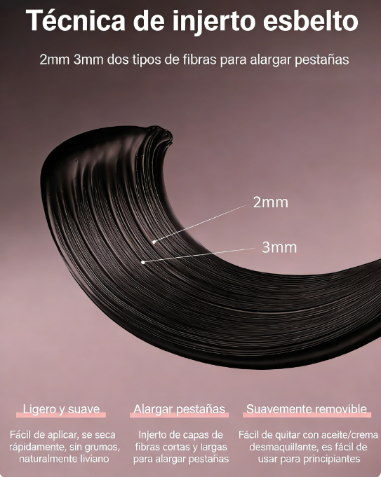 ✨ Máscara de Pestañas con Fibras Resistente al Agua - Alargamiento y Curva Instantánea sin Grumos para un Look Dramático 🌟👁️