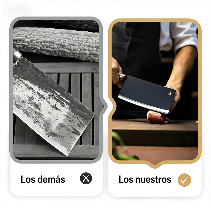CONSTRUCCIÓN FORJADA Y TRATADA TÉRMICAMENTE: Fabricado utilizando técnicas tradicionales de forja y tratamiento térmico para una durabilidad superior. La hoja de acero con alto contenido en carbono resiste las mellas y mantiene su filo incluso con un uso intensivo. A diferencia de los cuchillos estampados baratos, este diseño forjado garantiza un rendimiento duradero en cualquier cocina.