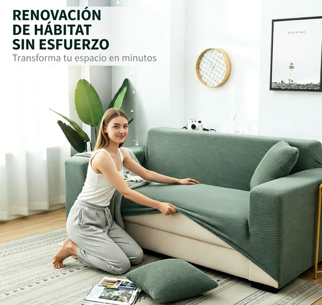 TEJIDO ALTAMENTE ELÁSTICO: garantiza un ajuste perfecto y sin costuras en sofás de distintos tipos y tamaños. Se adapta perfectamente a tus muebles, eliminando las arrugas y haciendo que tu viejo sofá parezca un mueble nuevo.