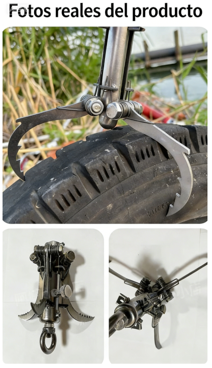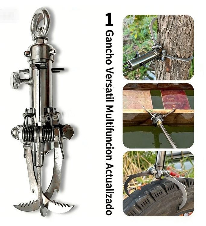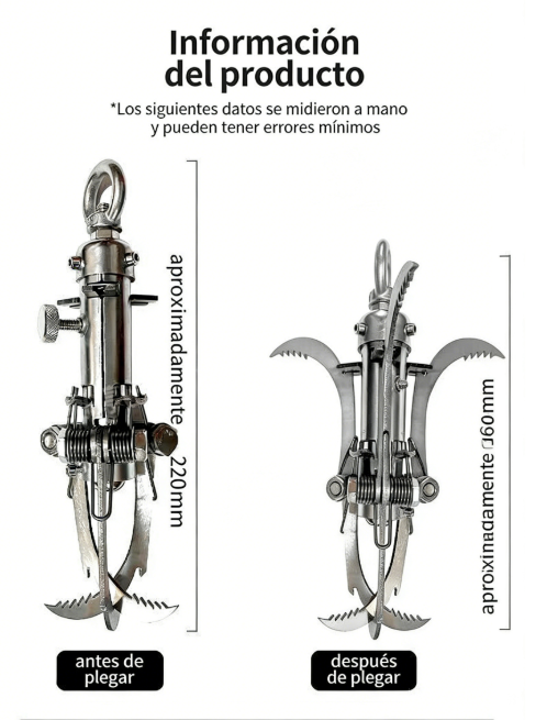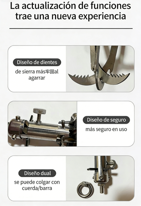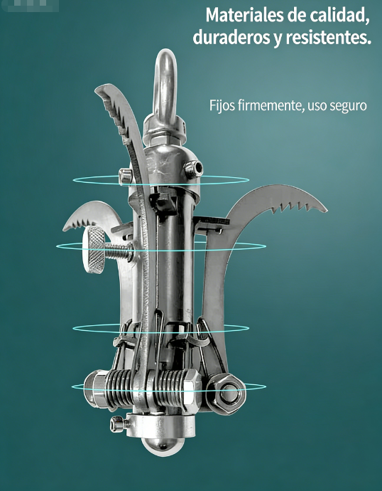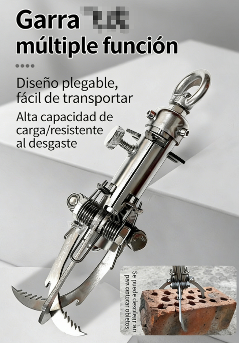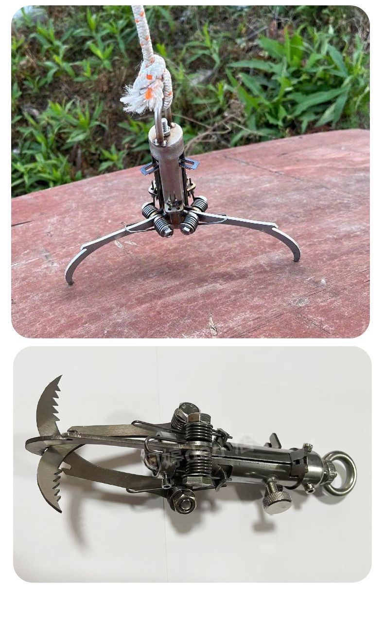 Su estructura de varias garras se abre automáticamente al lanzarse, agarrándose con fuerza a superficies como metal, madera o roca. Distribuye el peso de manera uniforme y reduce el riesgo de que se suelte.