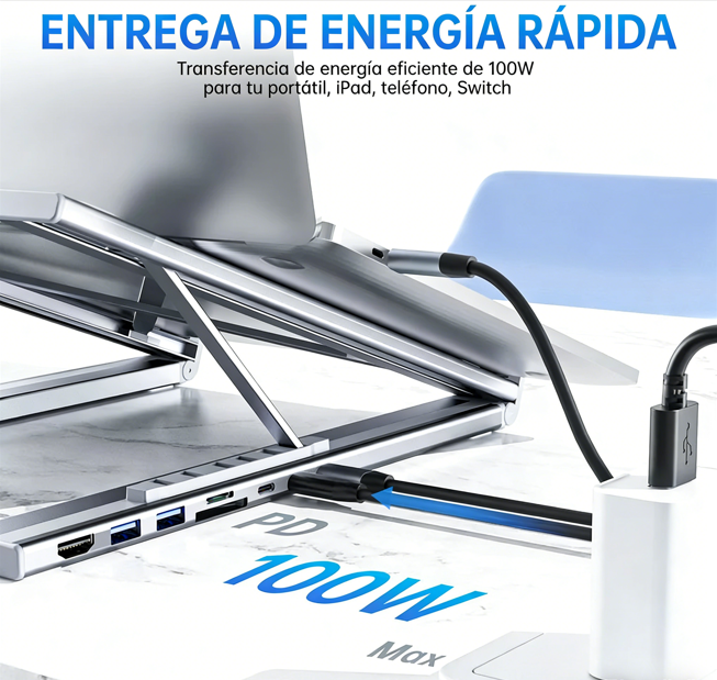 HUB INTEGRADO DE 8 PUERTOS - Esta estación de acoplamiento combina 8 puertos esenciales: HDMI 4K, USB-A 3.0, USB-C PD 3.0, ranuras para tarjetas SD/TF y entrada USB-C, lo que permite conectar fácilmente todos tus dispositivos en un solo lugar.