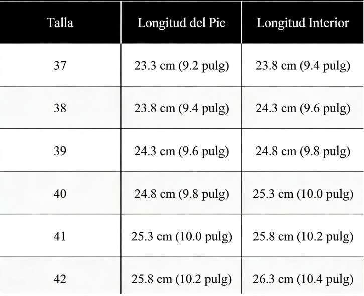 Talla: 37, 38, 39, 40, 41, 42
