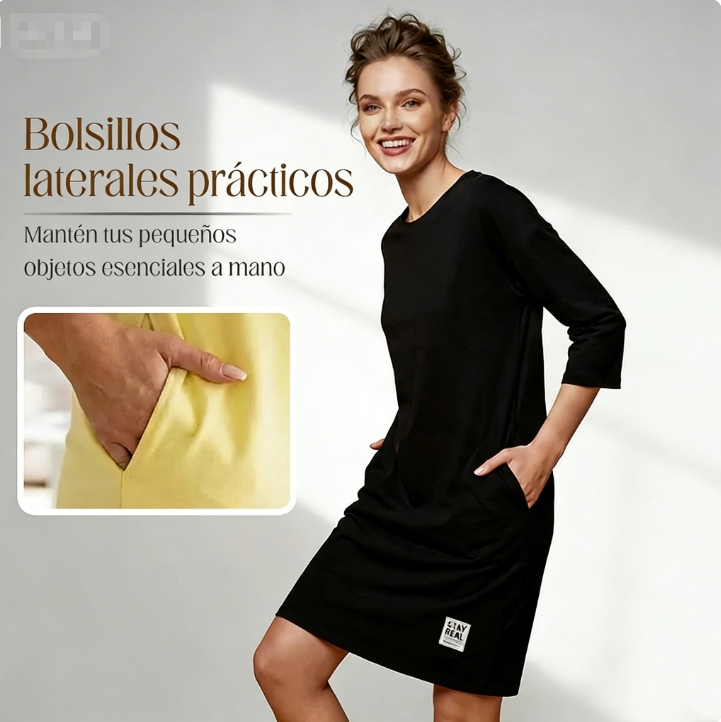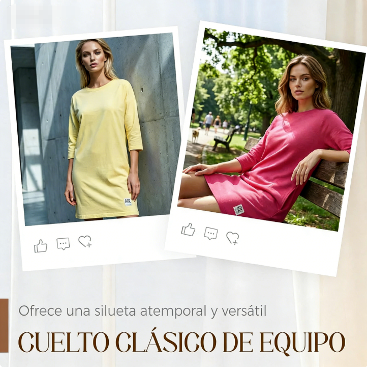 👗✨ Vestido Informal de Camiseta Holgada con Cuello Redondo para Mujer – Cómodo, Estiloso y Perfecto para el Día a Día 🌸🌟
