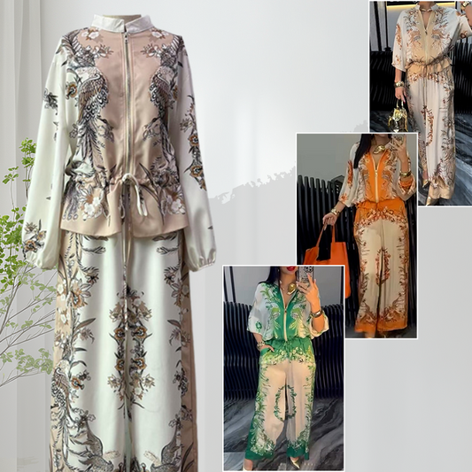 ⏰ ¡Oferta Limitada 50% OFF! 👚👖 Conjunto de Dos Piezas – Top con Cremallera Estampado y Pantalones de Pierna Ancha, Comodidad y Estilo Todo el Día 🌸✨
