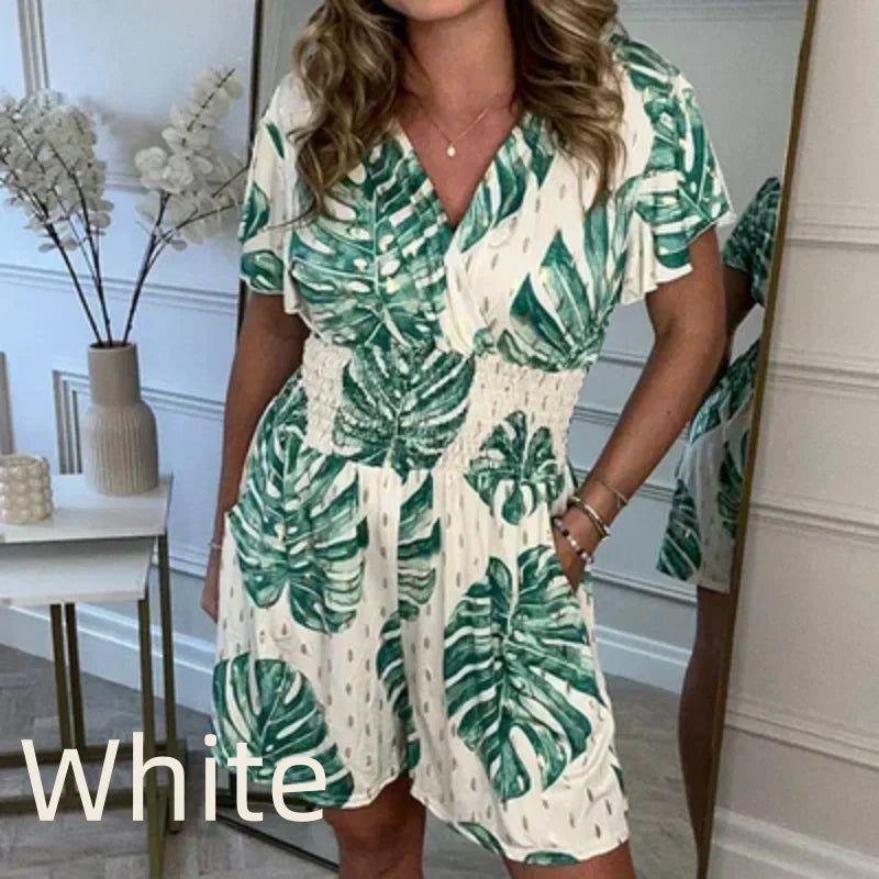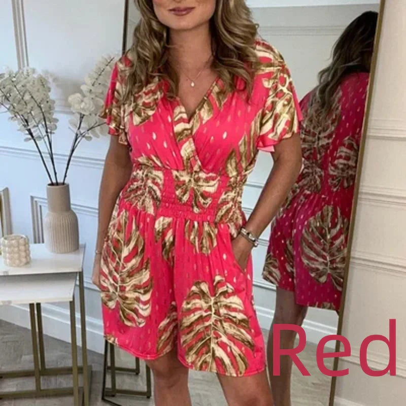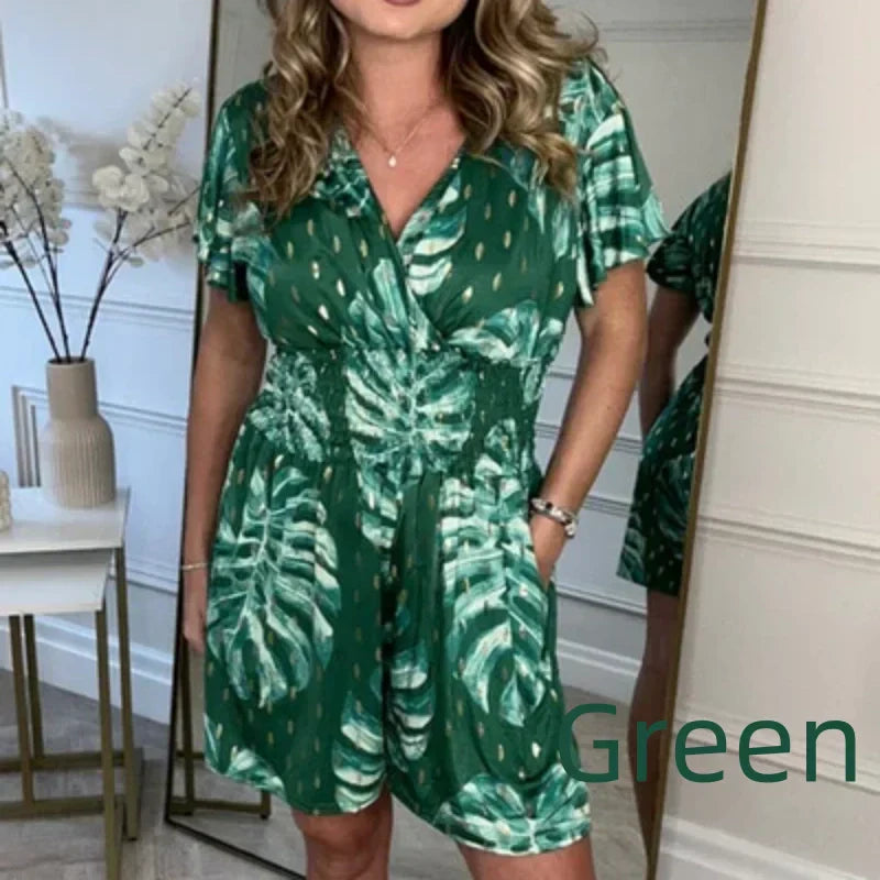 🍃 Mameluco Informal con Estampado de Hojas y Cuello en V para Mujer – Cómodo, Estiloso y con Bolsillos 🌿✨